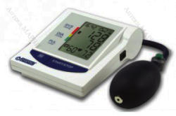 Felkaros, félautomata (kézi felpumpálás) vérnyomásmérő szívritmus zavar felismerés és kijelzés funkcióval. Mérés Fuzzy Logic technológiával. Nagy LCD ki jelzõn a dátum és idõ megjelenítése. Az utolsó 60 mérés eredményét tárolja el. Indítás: egy gombnyomással. A kapott értékeket WHO ajánlás szerint értékeli. Elemmel működik. Vérnyomás, Vérnyomásmérés általában! A vérnyomást befolyásolja a testhelyzet, a napszak, az érzelmi állapot. Gyakran az orvosi rendelőben magasabb értékek kerülnek rögzítésre, mint az otthon mért vérnyomásértékek. A magasvérnyomás betegség diagnózisának felállításában, valamint a kezelés hatékonyságának felmérésében is segíthet az otthoni mérés. Mi befolyásolja a vérnyomásmérés eredményeit? A vérnyomás függ a testhelyzettől, a napszaktól, az érzelmi állapottól, a fizikai aktivitástól, a mérést befolyásolja a kar vastagsága, a mandzsetta mérete. Ülő helyzetben a diasztolés vérnyomás 5 Hgmm-rel magasabb, mint fekve, a hát megtámasztásának hiánya is emeli az alsó értéket néhány Hgmm-rel. A keresztbetett lábak a szisztolés, azaz a felső értéket akár 8 Hgmm-rel is emelhetik. A mandzsettának a szív magasságában kell lennie – ez felkaron végzett mérés esetén könnyen kivitelezhető, csuklós vérnyomásmérő esetében azonban kifejezetten figyelni kell a kar pozíciójára. A megfeszített karizomzat szintén magasabb vérnyomás eredményhez vezet. Gyakori probléma, hogy a használt mandzsetta kicsi. Nagyobb karkörfogat esetén az artéria összenyomásához nagyobb nyomásra van szükség, ez hamisan magas vérnyomás értékeket eredményez, a mért szisztolés nyomás akár 20Hgmm-rel is magasabb lehet a valódinál. A mandzsetta belső, felfújható tömlőjének szélessége a karkörfogat 40 százaléka, hosszúsága a karkörfogat 80 százaléka legyen. A legtöbb vérnyomásmérő mandzsettáján fel van tüntetve, mekkora karkörfogathoz használhatók, a vásárláskor érdemes erre is rákérdezni. Csuklós vérnyomásmérő: Kifejezetten túlsúlyos egyéneknél kedvezőbb a használatuk, mivel a csukló átmérőjét a túlsúly kevésbé befolyásolja. A csukló szintjén a verőerekben a vérnyomás kissé eltérő lehet. A vérnyomás értékeinek osztályozása ________________________________________ Kategória Szisztolés nyomás (Hgmm) Diasztolés nyomás (Hgmm) Optimális vérnyomás < 120 < 80 Normális vérnyomás 120-129 80-84 Emelkedett-normális vérnyomás 130-139 85-89 Kóros vérnyomás - hipertónia 140 < 90= 180 > = 110 Izolált diasztolés magas vérnyomás < 140 > 89 Izolált szisztolés magas vérnyomás > = 140 < 90 Fontos, hogy a mérés során a mandzsetta a szívvel legyen egy magasságban, ez az eredmények értékelésekor utólag nehezen ellenőrizhető. Elengedhetetlen az is, hogy az eredményeket időről időre higanyos mérésekkel hasonlítsuk össze. Hogyan történjen a vérnyomásmérés? Az eredmények összehasonlíthatósága és a zavaró tényezők kiküszöbölése végett ajánlott néhány dolgot szem előtt tartani. Ne fogyasszon kávét, ne cigarettázzon, ne sportoljon a mérést megelőző fél órában! A mérést 5 perc nyugalmi helyzet után végezze! Mérés közben háta, alkarja legyen kényelmesen megtámasztva, lábait ne tegye keresztbe! Mérés közben ne beszélgessen! Érdemes 1-2 percen belül megismételni a mérést. Higanyos vérnyomásmérő esetén a mandzsettát lassan, 2-3Hgmm/másodperc sebességgel kell leereszteni, így nem kaphatunk hamisan alacsony eredményt. A mérést lehetőség szerint mindig ugyanabban az időben végezze! Válasszon megfelelő mandzsettaméretet! Az eredményeket vérnyomásnaplóban jegyezze fel, ez sokat segíthet kezelőorvosának a gyógyszeres kezelés megtervezésében. Vérnyomásmérés technikái Hallgatódzásos, higanyos vérnyomásmérő módszer: A noninvazív (vértelen) módszerek közül az egyik legrégebbi, több mint 100 éve használatos technika. Lényege, hogy a könyökhajlatban elhelyezkedő verőér (az artéria brachiális) fölé helyezünk egy fonendoszkópot, a vérnyomásmérő mandzsettáját felfújjuk a várható szisztolés vérnyomás fölé – ekkor a kar verőerében nincs áramlás, az eret teljesen elszorítjuk. A mandzsetta nyomásának csökkenésekor az artéria felett kopogó hang jelentkezik, amit a véráramlás megindulása okoz. Ekkor a mandzsettában levő nyomás a szisztolés vérnyomás értékkel egyezik meg. A nyomás további csökkentésekor a kopogó hang eltűnik – ekkor az artériában levő áramlás folyamatossá válik, így kapjuk meg a diasztolés nyomást. Hátránya, hogy egyedül nehezen kivitelezhető, ügyelni kell a mandzsetta helyes felhelyezésére, a koppanó hang eltűnésének felismerése nehézkes lehet. Oszcillometriás vérnyomásmérő módszer: Így működik az automata vérnyomásmérő. Lényege, hogy az artéria pulzálása áttevődik a felfújt mandzsettára is. A pulzálás akkor a legerősebb, amikor a mandzsetta nyomása megegyezik az artériás középnyomással (ez egy, a szisztolés és a diasztolés vérnyomás közötti érték, a Általában szervek vérkeringését jellemzi), a két vérnyomás értéket ebből algoritmusok segítségével számolják ki. Hátránya, hogy az előre megadott szorzók nem biztos, hogy minden egyénre egyformán vonatkoznak, ráadásul bizonyos ritmuszavarok, pl. pitvarfibrilláció esetén kevésbé megbízható. Előnye, hogy nem igényel fonendoszkópot, egyedül is kivitelezhető, a külső zajok kevésbé befolyásolják a mérést, kevésbé kell figyelni a mandzsetta felhelyezésére. Egyéb vérnyomásmérő módszerek: A tonometria a legpontosabb mérési módszer, viszont nagyon drága. Egy mechanikai tapintófej a csuklóartéria felett folyamatosan érzékeli annak nyomásváltozásait. Alk